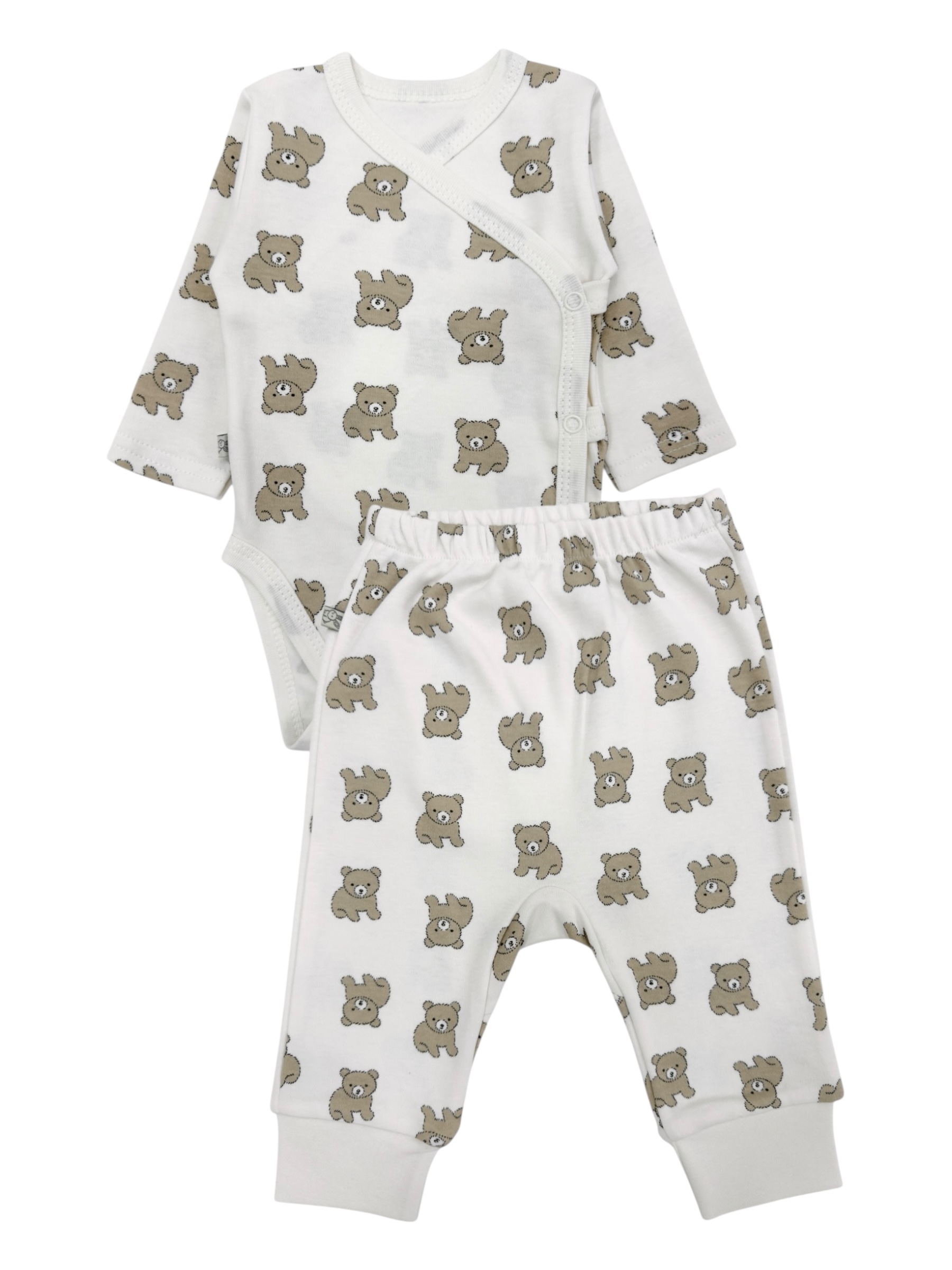 Baby bodysuit with pants crafted from 100% breathable cotton. A comfortable and practical set for daily wear, allowing free movement and keeping your baby cozy all day long.